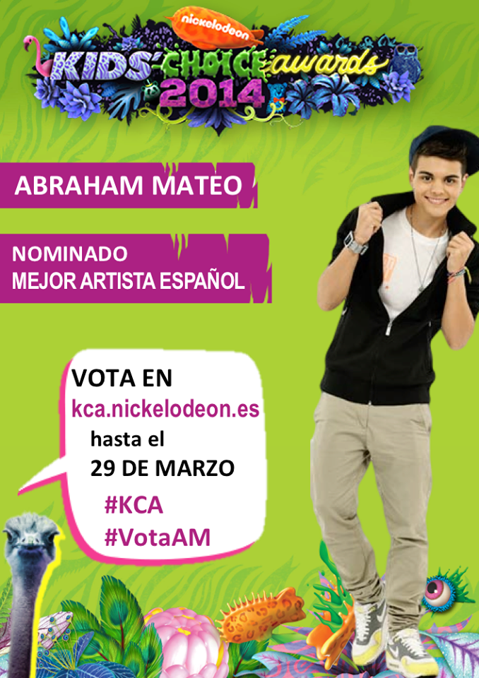 Abraham nominado a los Kids Choice Awards 2014! VOTAD hasta el 29 Marzo en http://kca.nickelodeon.es/vota! Gracias x vuestro apoyo! Venga Abrahamers que se sienta la fuerza Abrahamer en las votaciones :)
